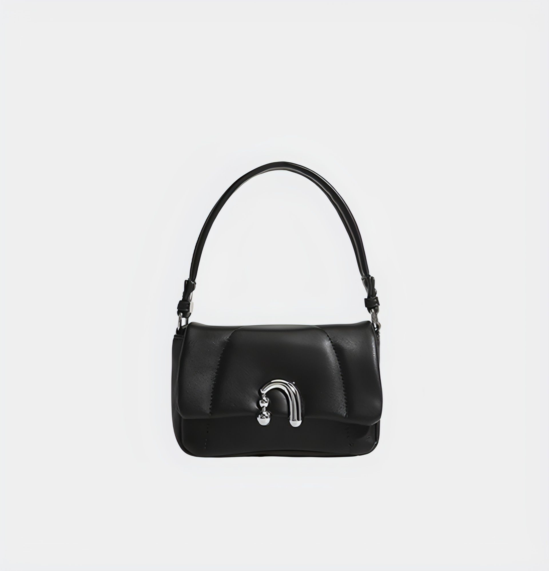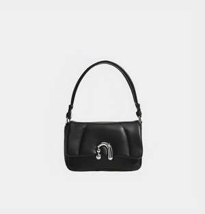 Elevate your everyday elegance with the Sleek Noir Mini Shoulder Bag, a timeless accessory that blends classic style with modern flair. This chic black bag is crafted with a smooth, sophisticated finish, exuding an air of understated luxury. Its compact design is complemented by a unique silver-toned hardware detail on the front, adding a touch of modernity to its sleek silhouette.